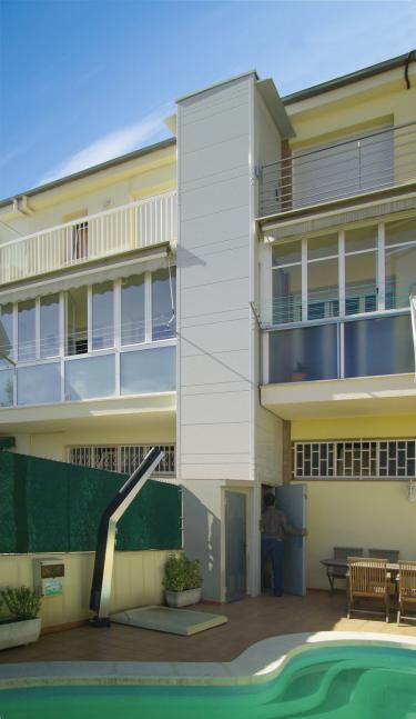 Es habitual que en casas unifamiliares o edificios antiguos no se cuente con un ascensor y tampoco se haya previsto un espacio para albergarlo en el interior de la vivienda. A pesar de que existen elevadores para espacios reducidos, en algunos casos la escalera no ofrece el hueco suficiente para instalarlo y no se dispone de ninguna otra opción. En estos casos existe una solución que consiste en instalar el ascensor en una de las fachadas del edificio.